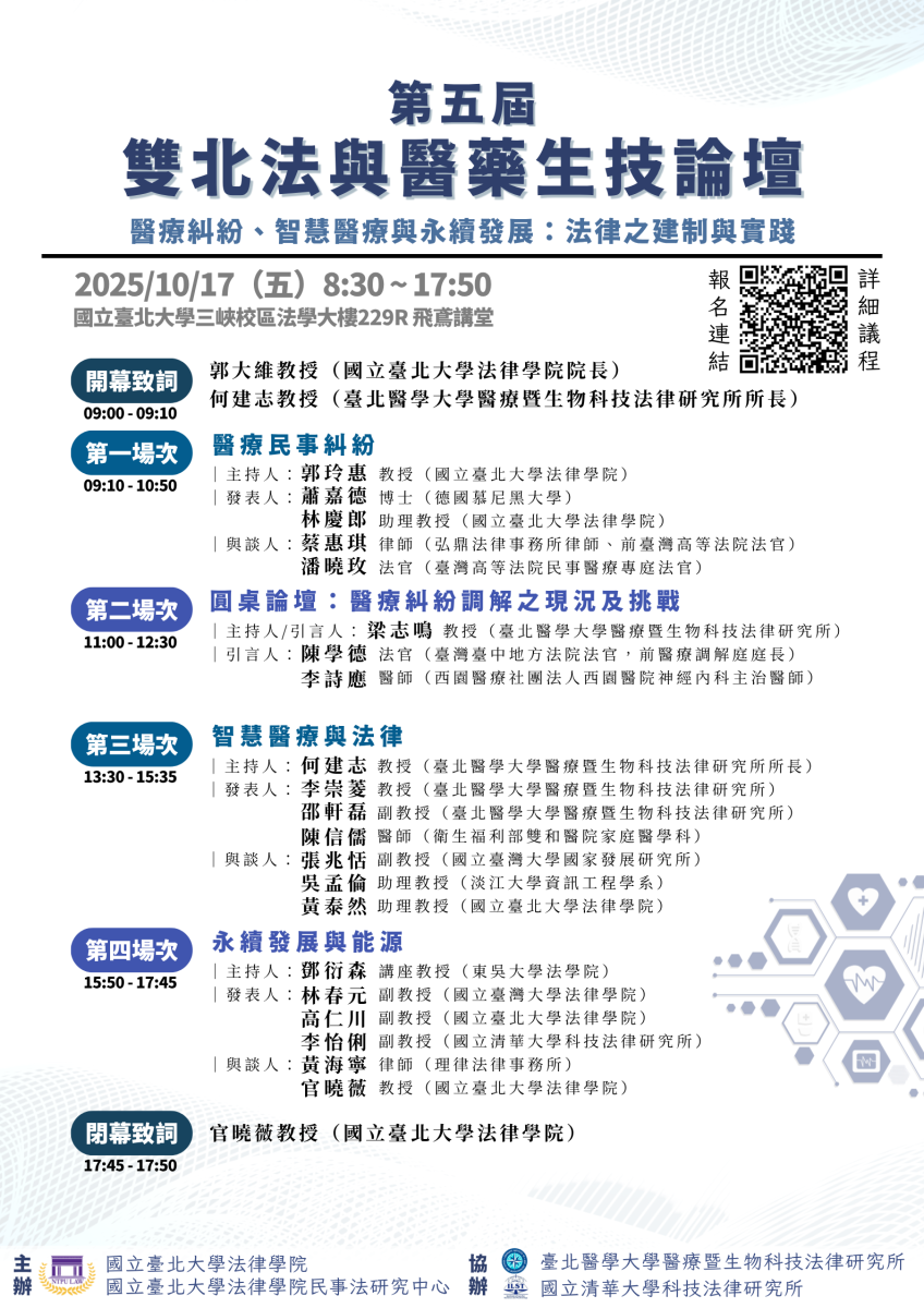 |協辦單位:臺北醫學大學醫療暨生物科技法律研究所