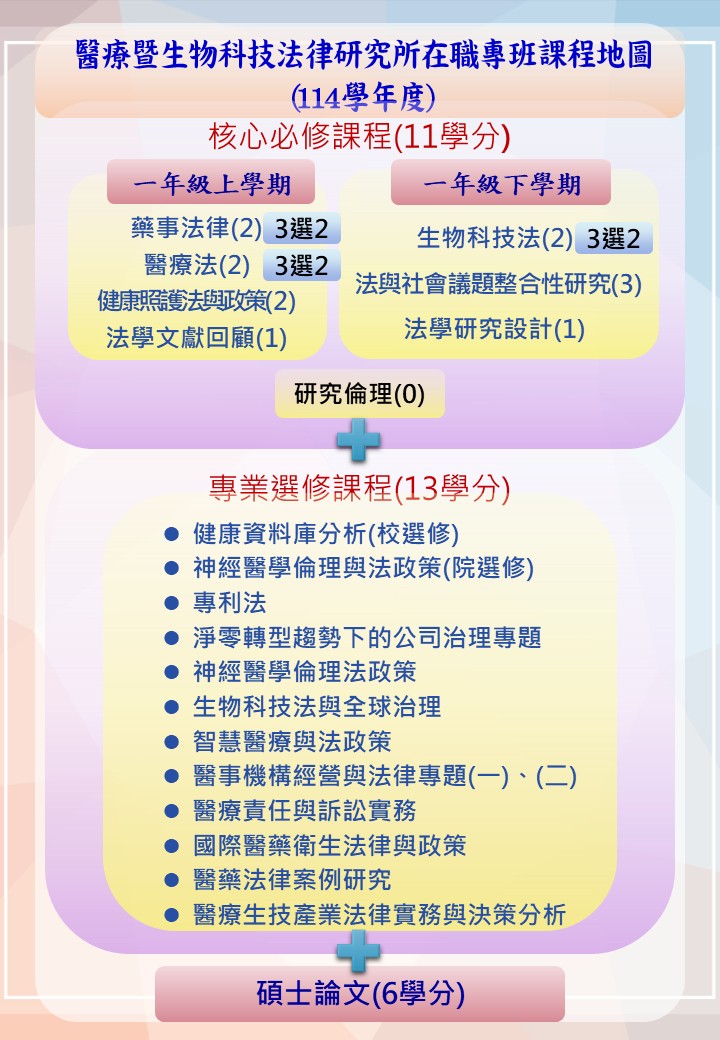 醫療暨生物科技法律研究所『在職生』必選修科目表(114學年度)
