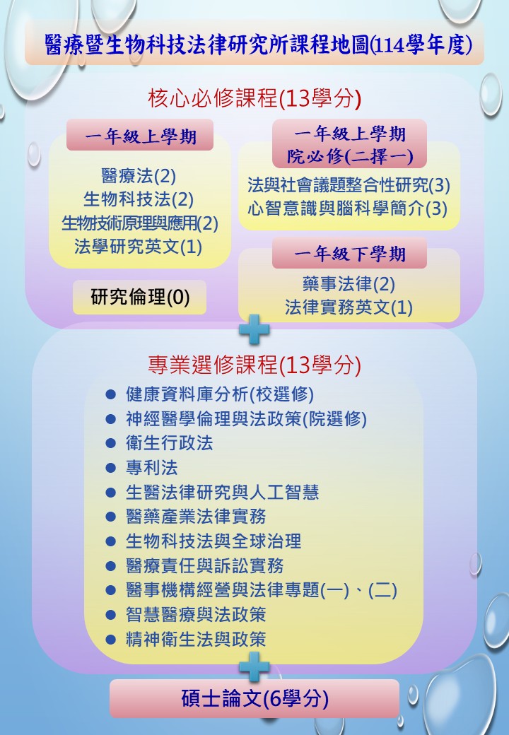 醫療暨生物科技法律研究所『一般生』課程地圖(114學年度)
