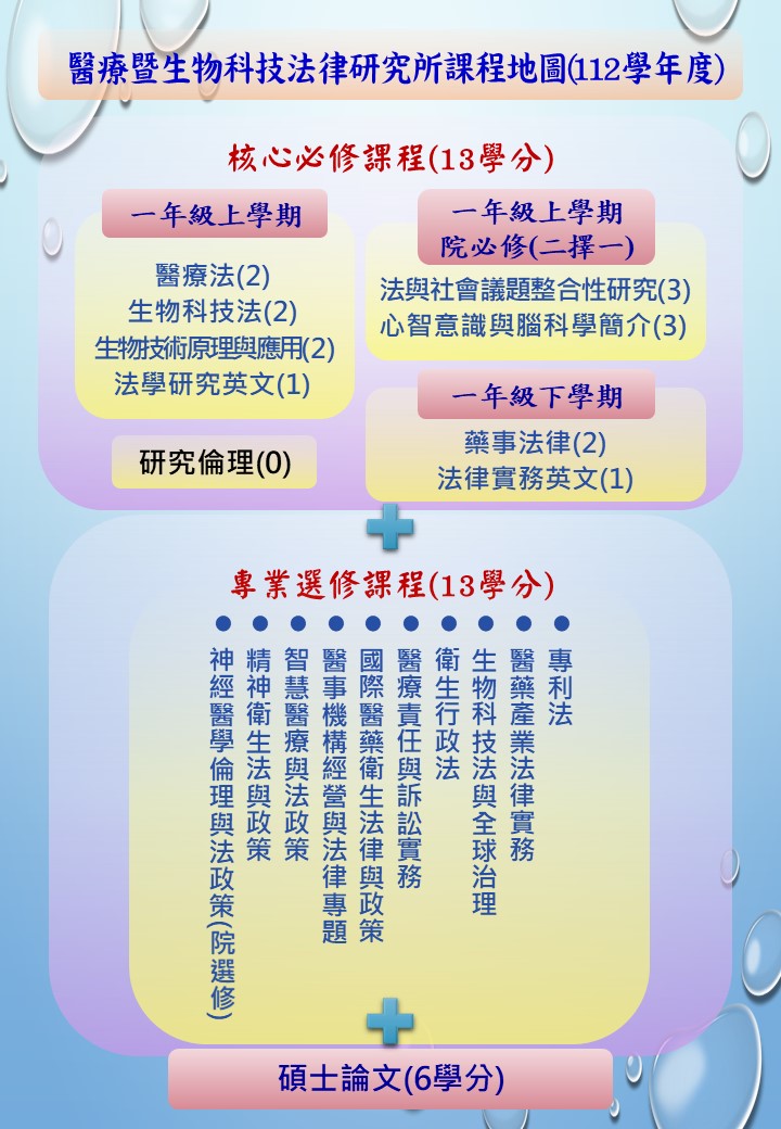 醫療暨生物科技法律研究所一般生課程地圖(112學年度)