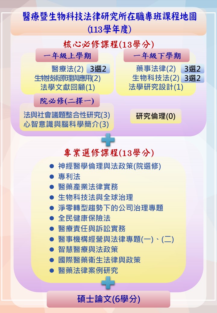 醫療暨生物科技法律研究所在職生課程地圖(113學年度)